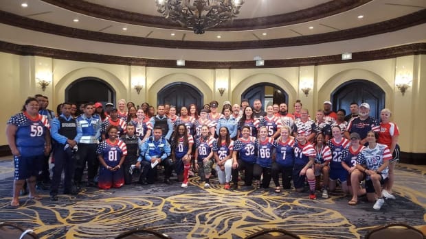 Think about what you were doing last Wednesday morning—taking your kids to school? going to the gym?—and that puts into perspective how much has changed since Balochko and the rest of the team left their homes. The 45-year-old, a firefighter and paramedic from Ohio, is the linebackers coach for the women’s USA All-Star team run by the American Football Events nonprofit. The players and coaches on the team represent professional women’s teams in 15 states across the U.S. Among the team are a teacher, nurse, NYPD officer, correction officer and active and retired military. There are several moms in the group.