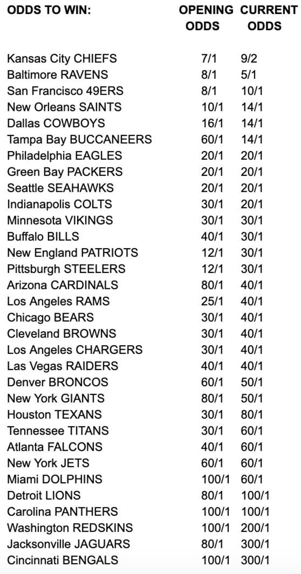 NFL Super Bowl Odds: Biggest Risers From Start of Free AgencyNFL Draft 2020: Which Running Back Gets Drafted First?