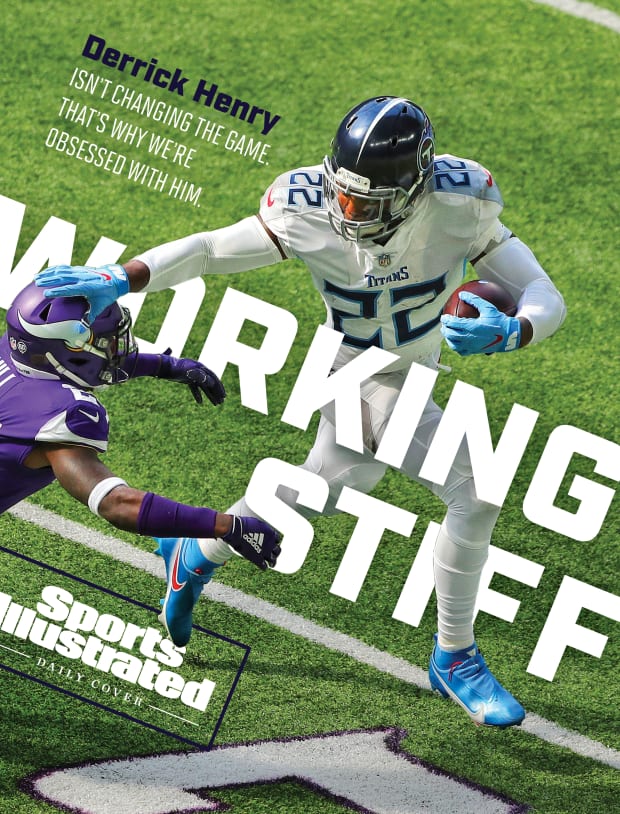 Henry remains his team’s best-known player, an uncommon designation for a modern-day running back. Yet he stands for no new strain of strategic enlightenment. Alvin Kamara, the latest Future of the Position, is an angle-busting, pass-catching speedster, capable of cutting in any direction at any moment. Sure, Henry has a never-before-seen element, but his is mostly a difference of degree, not type. At 6’ 3” and 247 pounds, he’s as big as some defensive ends, and his breakaway speed of nearly 22 mph ranks among the best in the NFL, at any position. His limbs look hydraulic. He is as daunting a power runner as exists in today's pro football. But he is still a power runner.